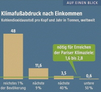 Allgemein bestätigte Berechnungen haben ergeben, das die Menschen mit wenig Einkommen und Vermögen das Klima und die Umwelt wenig Belasten. Die übergroße Mehrheit der Menschen ist also nicht für die Zerstörung der Umwelt und den Klimawandel verantwortlich. Wie in der erstellten Graphik deutlich sichtbar gemacht, sind es die wenigen und sehr reichen Menschen, die für die zerstörung der Lebensgrundlagen auf dem Planeten verantwortlich sind.